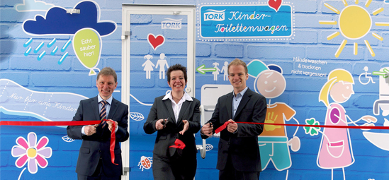 Tork und hauptdienste präsentieren innovativen Kinder- Toilettenwagen Bild: Präsentation des Toilettenwagens fand im Schlossgarten Schwetzingen statt. V.l.n.r. Markus Stojan (Tork), Stefanie Nagel (Tork Marketing) und Johannes Haupt (hauptdienste) Schwetzingen. Gestern, 24.03.2014, hat Hygiene-Spezialist Tork gemeinsam mit hauptdienste, Anbieter mobiler Lösungen für Veranstaltungen, einen neuen Kinder-Toilettenwagen eingeweiht. Die Sonderanfertigung wurde speziell für kleine Besucher entworfen: Sanitäre […]